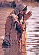 Woman saying "pranam" [salute] to Sun Benaras, Uttar Pradesh |